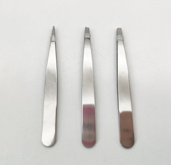 Pinzas de pestañas plateadas con herramienta de pestañas de acero inoxidable con punta fina inclinada